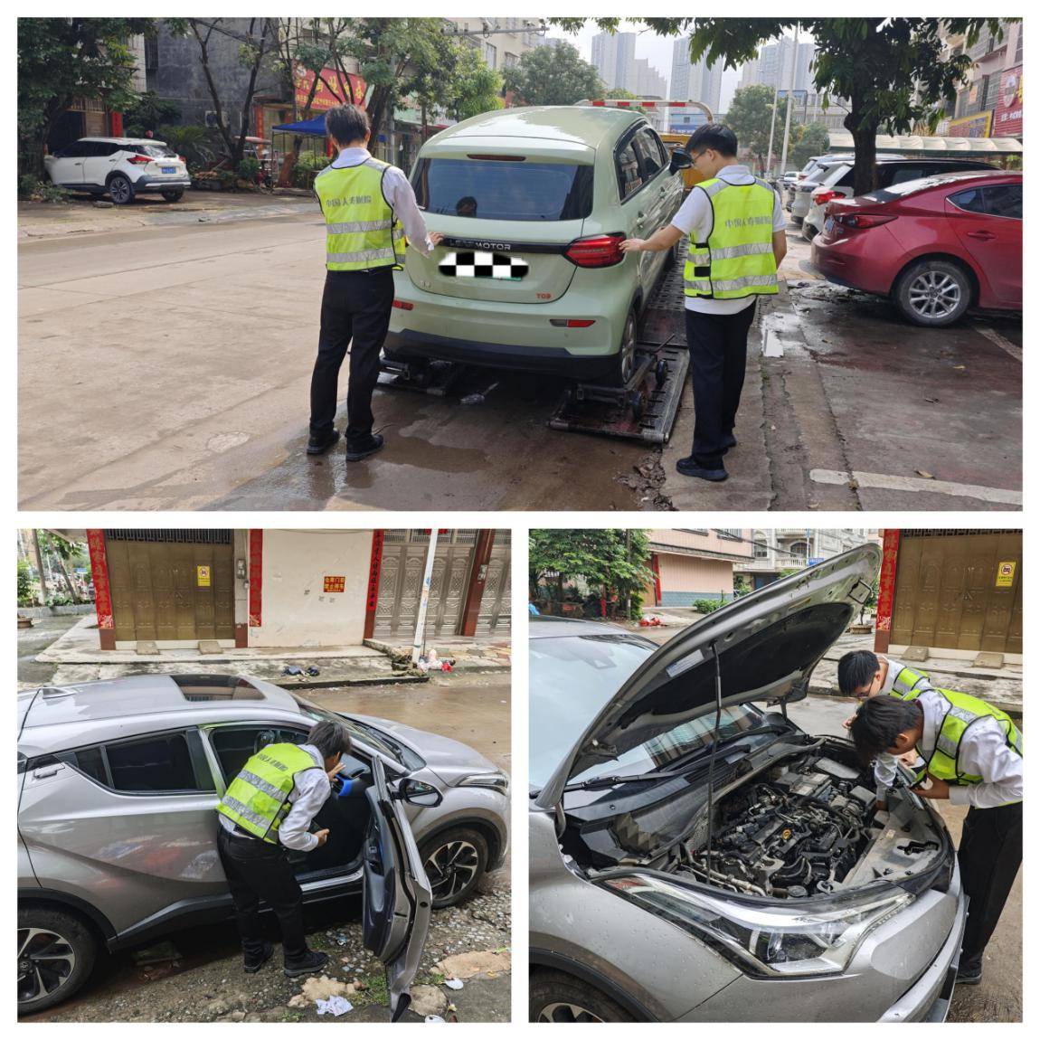 快速响应,出动救援。灾害发生后,中国人寿财险广西分公司理赔分管领导第一时间带队赶赴钦州,对防灾救灾工作进行全面部署和现场督导。中国人寿财险钦州中支理赔队伍迅速统筹内外资源,全力投入灾害事故理赔服务,确保救援响应及时高效。同时,在市区易涝积水点设置积水绕行提示牌,引导过往车辆与行人注意安全防范,切实保障公众生命财产安全。针对本次暴雨灾害中遇险的百余起水泡车案件,公司当天已完成全部案件的前期查勘与取证工作。